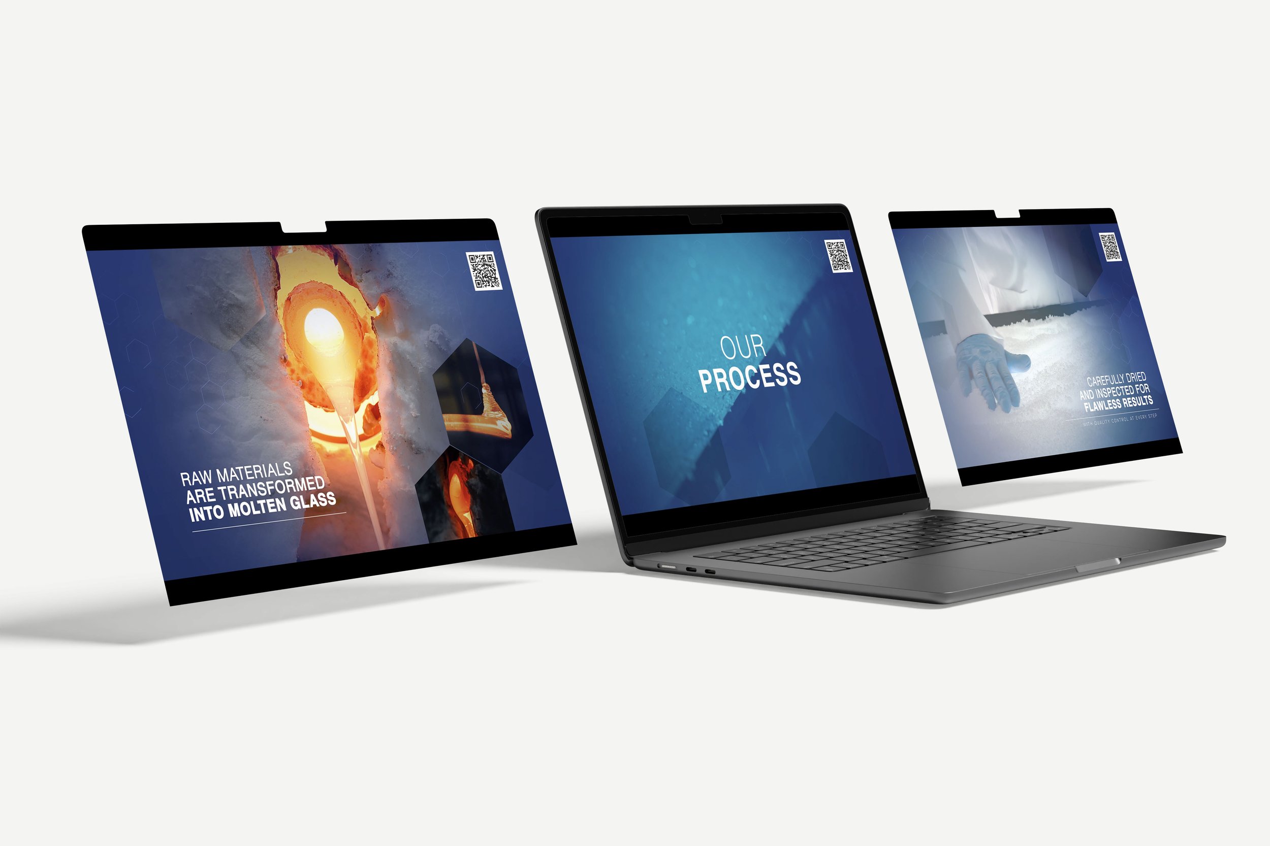 This was supported by large-scale visuals and close-up photography showing the production process in detail. A short looping video combined real production footage with subtle motion, adding depth and drawing attention while reinforcing the story being told across the space.